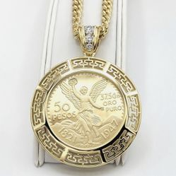 14K Gold Plated Mexican Centenario Moneda 50 Pesos CZ Pendant Optional Chain$0Miami, FL