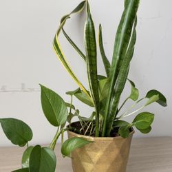 2 Snake Plants + Pothos Combo – Gold Geometric Pot, Indoor Plants$15Hollywood, FL
