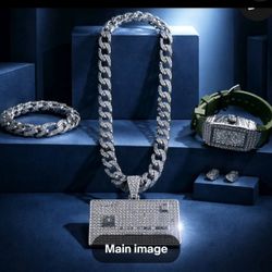Men's Silver's Watch, Figaro Necklace&Bracelet, VVS CZ Earring$200Miami, FL