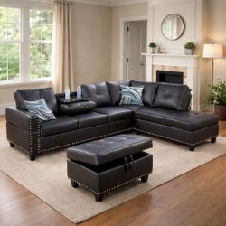 Black/ Dark Brown Sofa Sectional With Ottoman$200Miami, FL