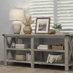 Rustic Farmhouse Table - Weathered Gray Wood with Shelves$250Miami, FL