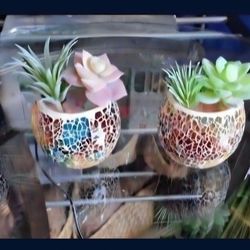 *** NEW LOW PRICE *** 'BIG-GLASS' Mosaic Vases with Faux Succulents @ Lasting Creations$30Oakland Park, FL