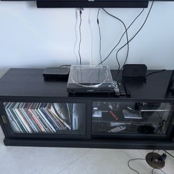 TV Stand with two sided shelves glass front door swivels back-and-forth$25Pompano Beach, FL