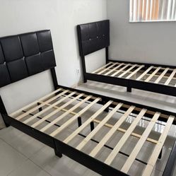 TWIN BED SET 2 BED FRAMES BOX SEALED BLACK OR WHITE DIAMOND HEADBOARD PLATFORM BED CAMAS TWIN $299Miami, FL