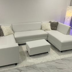 White Faux Leather Sectional $500Miami, FL