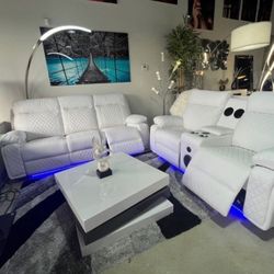 White Leather Sofa & Loveseat Recliner Set W/Led $999Princeton, FL