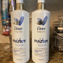 Set of 2 dove body love MOISTURE BOOST body cleanser•hyaluronic serum+ mornings oil•17.5oz•all $14$14Orange Park, FL