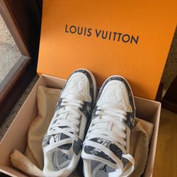 White-gray leather triangular label sneakers$500Jacksonville, FL