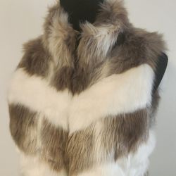 White House Black Market Faux Fur Vest, Ivory/Brown, Size XXS $30Orange Park, FL