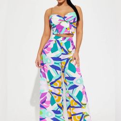 Fashion Nova 2 piece women wide leg pants set crop top button gold chain straps$35Orange Park, FL