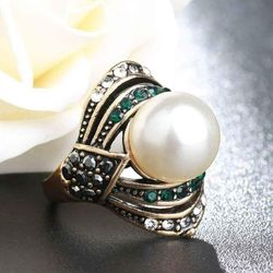 Vintage White Pearl Antique Gold Tone Turkish Ring - Size 6$18Jacksonville, FL