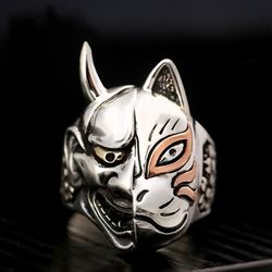 Japanese Prajna Hannya Mask Head Flower Silver Ring - Size 10$16Jacksonville, FL