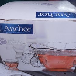 Vintage Anchor Hocking 7 Quart Punch Bowl Set Savannah 18 PC Service for 8