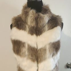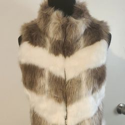 White House Black Market Faux Fur Vest, Ivory/Brown, Size XXS $30Orange Park, FL