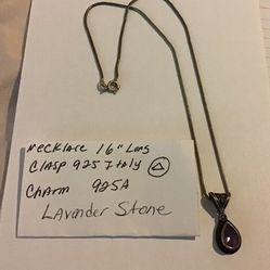 Necklace 16” L Stamped 925 Italy Clasp, 925A Charm , Lavender Stone $50Jacksonville, FL