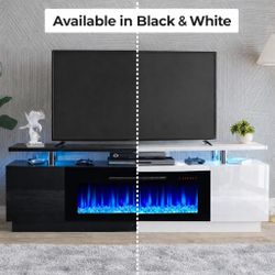 Modern TV Stand with Electric Fireplace & LED Lights – Fits Up to 80” TVs, High Gloss White Entertainment Center $250Jacksonville, FL