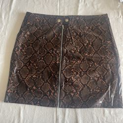 Shinestar Snake Print Mini Skirt Size L Brown Faux Leather Pockets Full Zip$20Jacksonville, FL