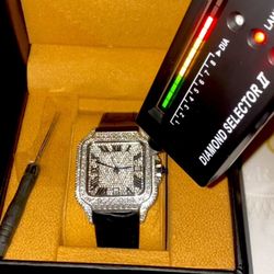 VVS1 Moissanite Watch GRA Certified Pass 💎 Test Mechanical Movement Stainless Steel Dial Leather Strap$450Saint Aug Beach, FL