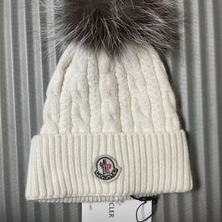 Moncler Ladies White Fox Fur Pom Beanie Logo Hat$75Baldwin, FL