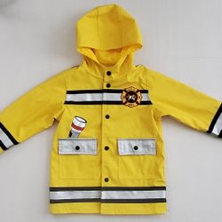 Wippette Kids Hooded Rain Coat Jacket Lined sz 3T Yellow Firefighter Fireman