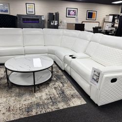 New White Leather Manual Recliner Sectional With Cupholder & Storage. Delivery & Set Up Available $1,799Jacksonville, FL