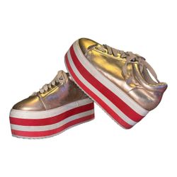 Lilliana Platform Wedge Sneakers Gold Pink & Red Stripes Size 7.5$20Macclenny, FL