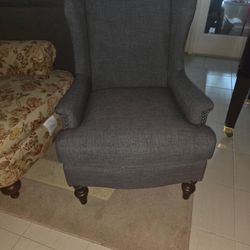Gray wingback accent chair with nailhead trim and wood legs $120Orlando, FL