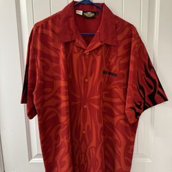 (#1) Harley-Davidson Red w/Flames Polyester Short Sleeve Shirt - Size L - Like New$30Magnolia Square, FL