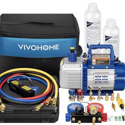 VIVOHOME 110V 3/4 HP 7.2CFM 2 Stage HVAC Vacuum Pump and 4 Way AC Manifold Gauge Set Kit with Leak Detector 5ft Hoses $200Apopka, FL