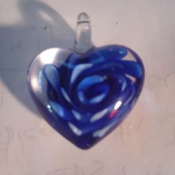 Glass Blown Heart Pendant For Jewelry Making Transparent W/ Blue Floral Design...SHIPS FREE $15Howey In Hls, FL