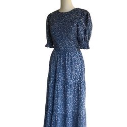 Shein Blue Polkadot Elastic High Neck Puff Sleeve Cottagecore Modest Dress Size M$25Orange City, FL