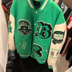 Unisex green college bomber jacket, size L, unisex puffer jacket$12Davenport, FL