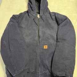 Carhartt Mens Canvas Full Zip Lined Hooded Navy Blue Jacket Size XL$110Kissimmee, FL