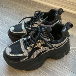 Berness - HANNA 02 Endless Mode Rhinestone Black Platform Sneakers $30Orlando, FL