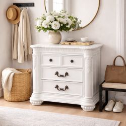 Elegant Vintage White Nightstand / Accent Chest – Ornate Carved Details – 3 Drawer Entryway$199Orlando, FL