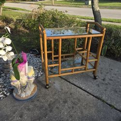 Vintage bamboo rattan boho bar cart on wheels dry bar server with glass shelves$195Longwood, FL