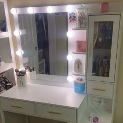 White Makeup Vanity with Hollywood lights, lots of drawers and storage space + outlets $170Magnolia Square, FL