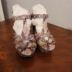 Cape Robbin Snakeskin & Tan Strap Heels – Size 10 (New in Box)
