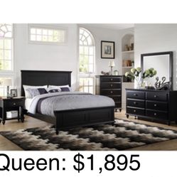 Beautiful Black Queen size Complete Bedroom Set. Mattress Sold Separately $1,895Oviedo, FL