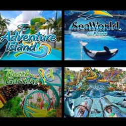 Seaworld, Aquatica, Busch Gardens, and Adventure island Tickets$50Orlando, FL