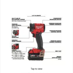 Milwaukee 2850-20 M18 18 Volt 1/4 inch brushless hex impact driver with battery $200,Retails for $350 plus$200Orlando, FL
