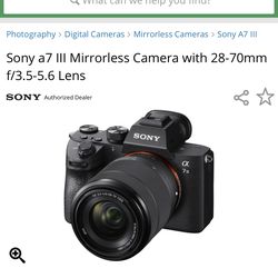 Sony A7III – Like New, Barely Used (Full Set + Free Camera Bag)$1,450Orlando, FL