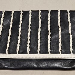 CHRISTOPHER KON Black Leather large clutch w/ cream stripes $50Heathrow, FL