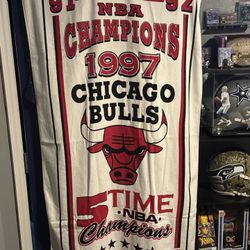 Vtg 90s Chicago Bulls beach towel 1997 Championship 5 Time white red cotton NBA$30Cocoa, FL