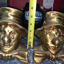 Pair Of MCM Mid Century Modern Solid Brass Book Ends Clown Hat Now Sad$90Debary, FL