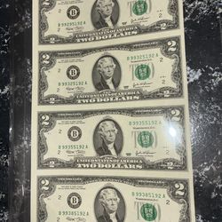 Uncut $2 bills sheet$30Debary, FL