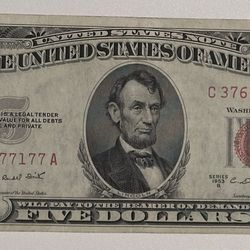 1953 - $5 bill, Series item known as a "Red Seal"$300Kissimmee, FL