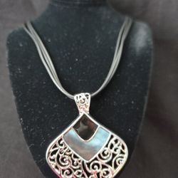 2 Lia Sophia Silvertone Necklaces Heart Charms Crystals Abalone Black Cord Vtg$20Oakland, FL