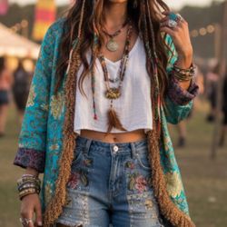 Vintage Fairy Core Y2K Jacket Fringe whimsical Bows Turquoise Brocade The Find$100Heathrow, FL