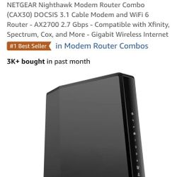 NETGEAR Nighthawk Modem Router Combo (CAX30) DOCSIS 3.1 Cable Modem and WiFi 6 Router$200Orlando, FL